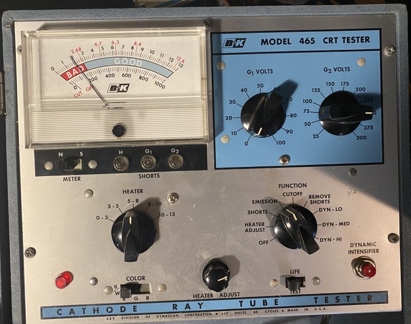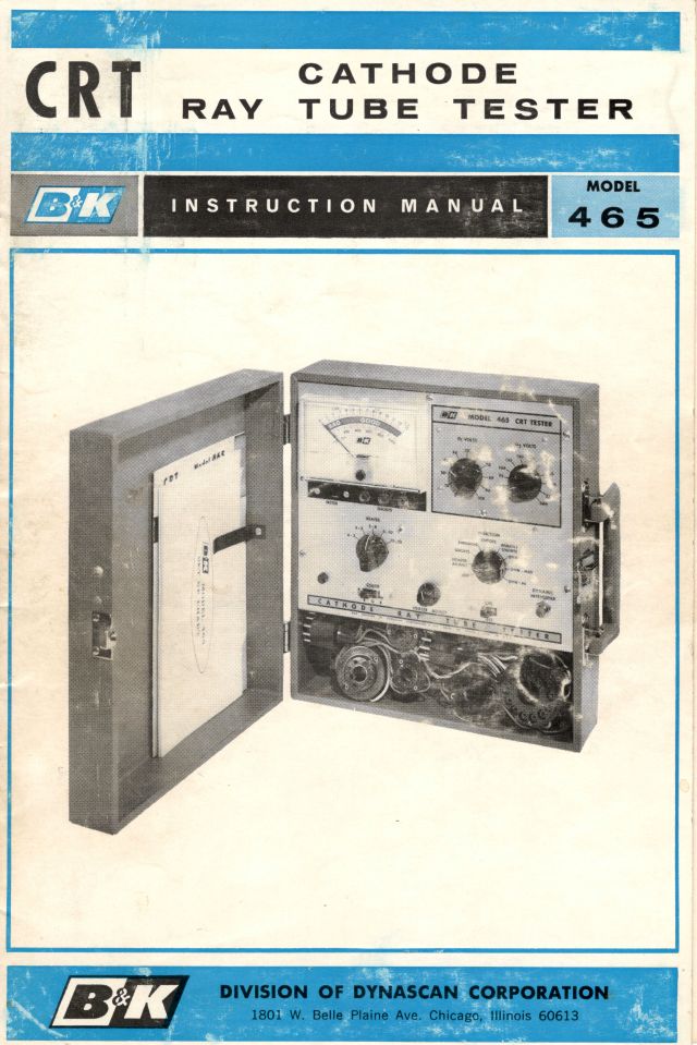 The picture above is of a B&K Model 465 Cathode Ray Tube (CRT) Tester.
