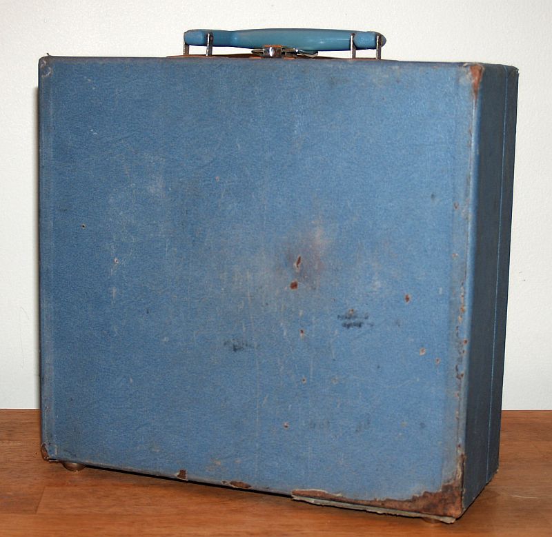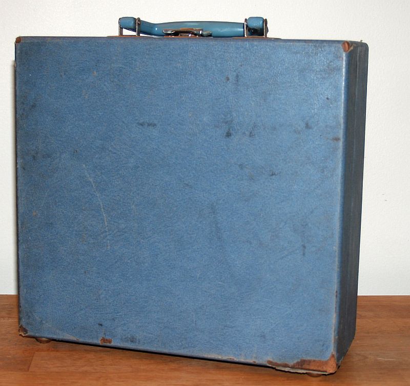 The meter is housed in a wooden case that has a blue vinyl covering that cleaned up reasonably well. Only a little of the vinyl is missing as can be seen below.