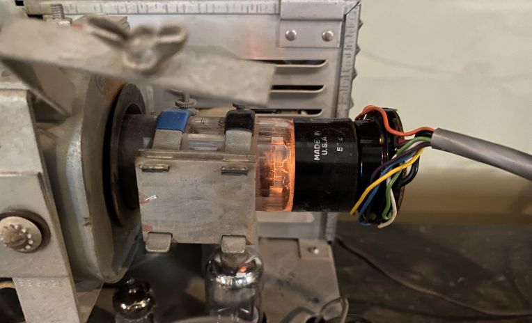 Below is a picture of a CRT heater being powered by the tester.The CRT is in the Admiral Model 20X122 TV I am restoring.
