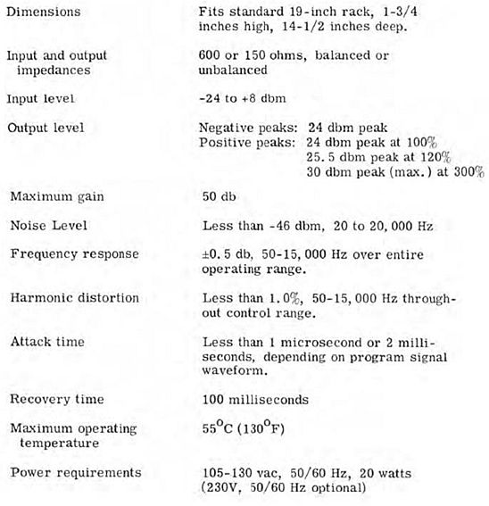 and those requiring infrequent use (e.g., the INPUT LEVEL and OUTPUT SET controls) are recessed screwdriver adjustments. A front panel meter indicates the relative degree of gain reduction.