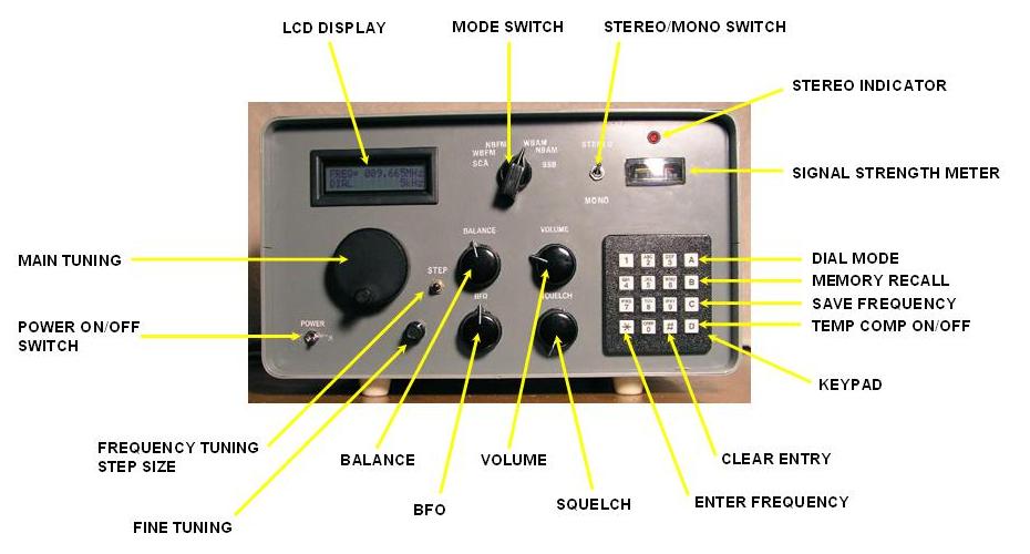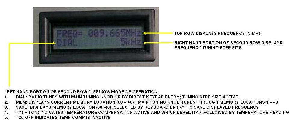 LCD indicating frequency, dial/memory, step size