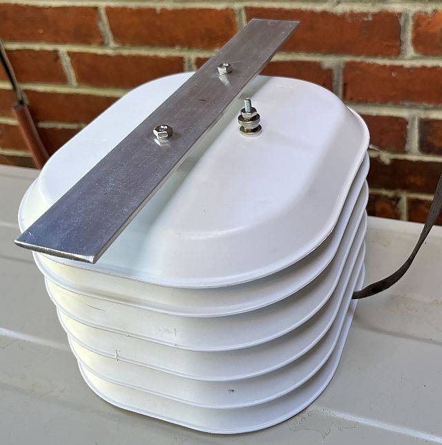The picture below shows the completed sensor/shield assembly ready to mounted under the roof overhang.