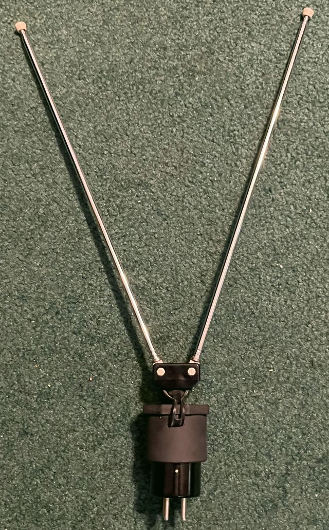 When I initially received the television, the origignal antenna was missing. I fabricated an antenna using a readily-available inexpensive rabbit-ears antenna,