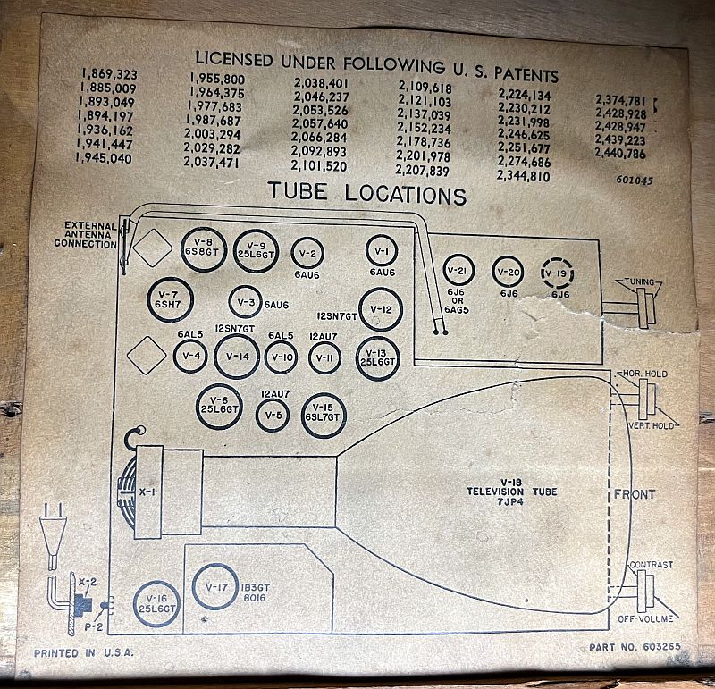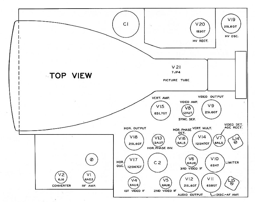 The picture below shows the tube layout as depicted in SAMS Photofact Folder 6 of Set 87, dated 3-50.
