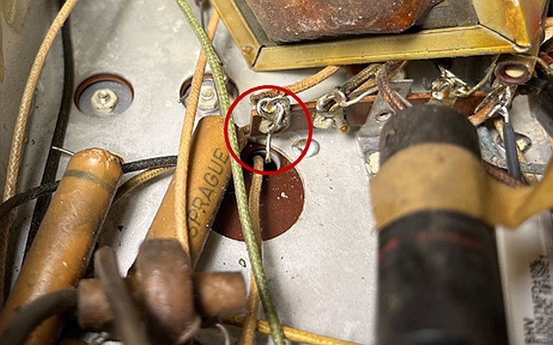 When replacing one of the high-voltage wax paper capacitors, I noticed one lead of the capacitor was never soldered during assembly. The unsoldered connection (but with the original