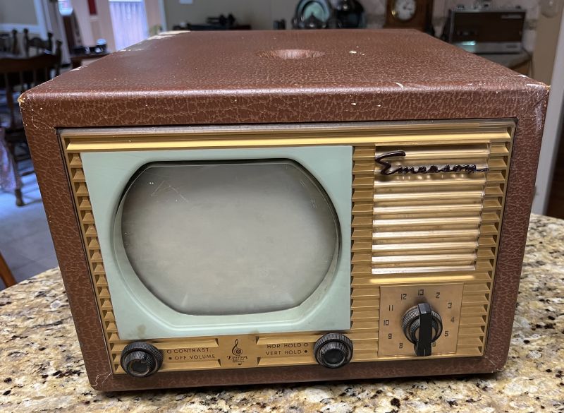 This is an Emerson Model 600 monochrome (black-and-white) television receiver. This television was