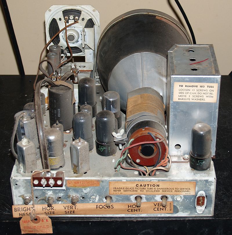 manufactured in 1949 and incorporates a 7JP4-type 7-inch diameter round cathode ray tube (CRT) with a standard US VHF tuner for channels 2 through 13.