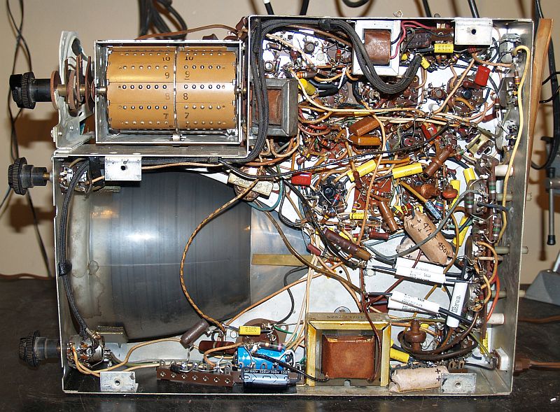 I replaced all of the wax paper capacitors in the television. In addition, I replaced all of the electrolytic capacitors but left the original chassis-mounted multi-element