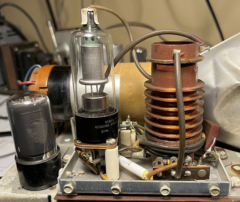 The pictures below shows inside the high voltage cage before and after restoration. The cage contained one high voltage wax paper capacitor that I replaced.