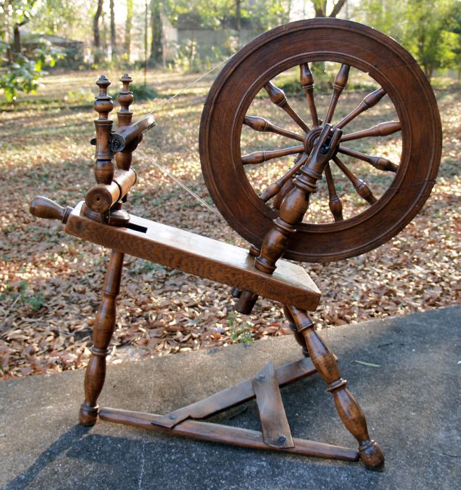This is a flax wheel that belonged to my grandmother. This device is used to form wool or flax into