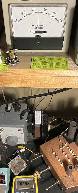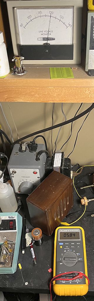 Then, I connected the CRT and slowly brought up the television using a variable transformer and isolation transformer while monitoring the ac filament voltage at the CRT.