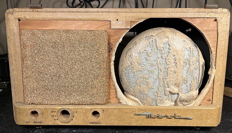 Although the television was in reasonably good condition when I received it, as shown in the pictures below, the original gasket or mask on the face of the cathode ray tube (CRT)