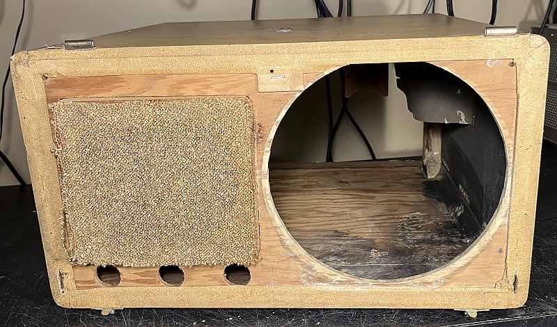 The CRT is readily installed through the rear because the wooden upper trim piece is held in place by three screws that are difficult to access with the CRT in place. However, during initial