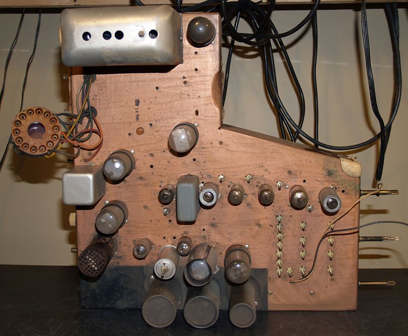 The television comprises 16 vacuum tubes. The picture below shows the tube layout.
