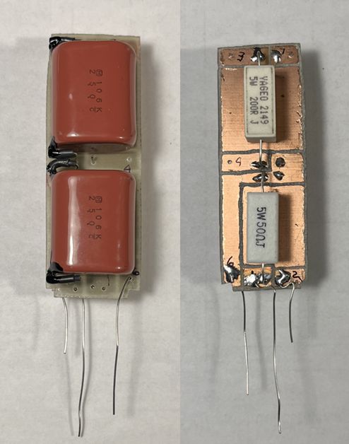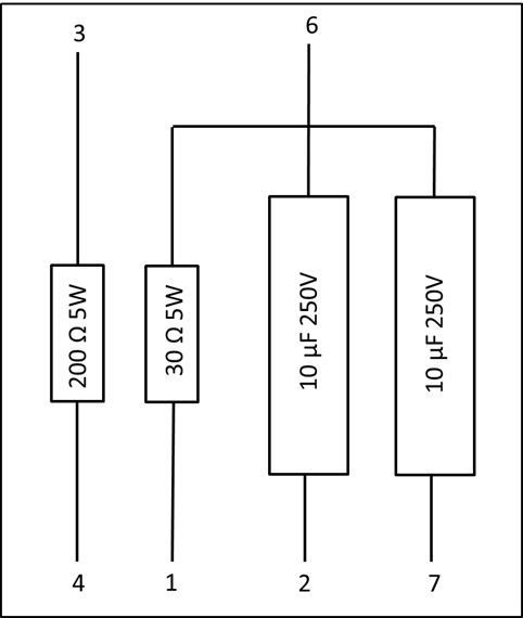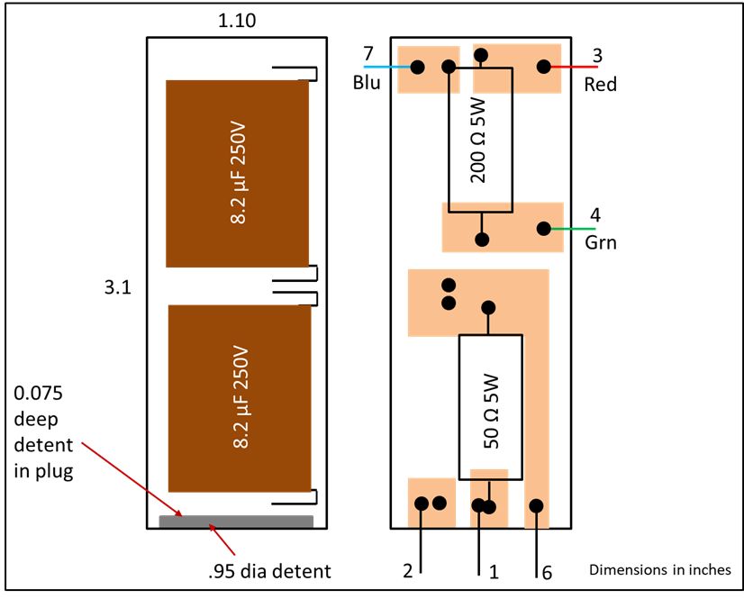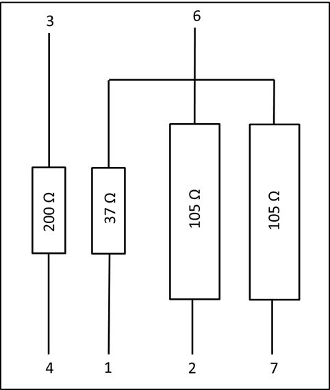 Three of the four resistors measured open circuit. The Motorola part number for this ballast assembly is 17A485459. An elecrical schematic of the original 17A485459 ballast assembly